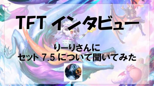 こんにちは黄身です。 久しぶりのブログ更新です! TFTのインプット量が減ってアウトプットすることが減ってました反省です! さて今回は9/8からくるセット7.5に合わせて、7.5を日本で一番プレイしてるであろう「りーり」さんにインタビューしました。 LOLパ…
